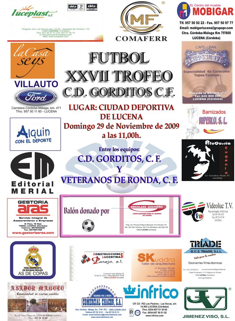 El Gorditos C.F. celebro el último fin de semana de Noviembre su trofeo anual, cuya edición ha sido la XXVII, y que perdió ante el Ronda Veteranos C.F. en los penaltis, tras quedar el encuentro empatado a dos en los noventa minutos reglamentarios.